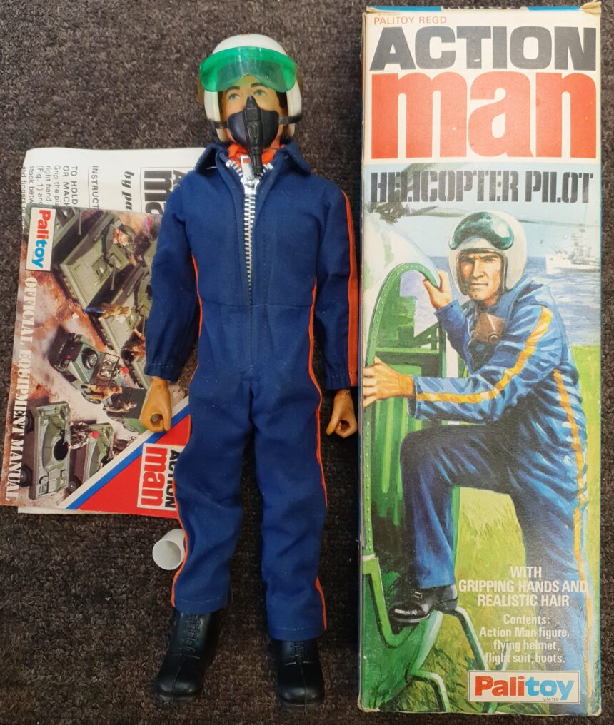 Vintage 1970’s Palitoy Action Man Helicopter Pilot Gripping Hands Figure boxed